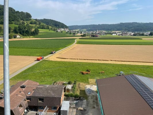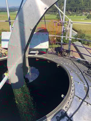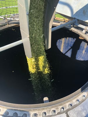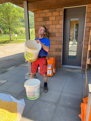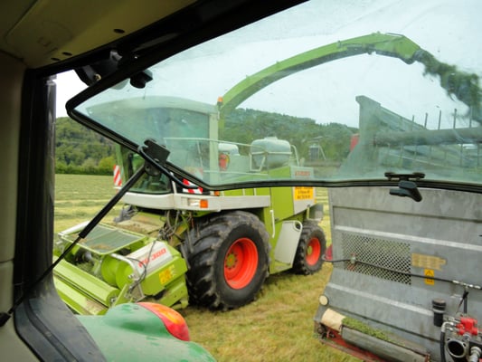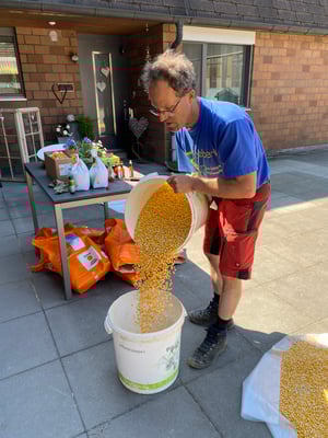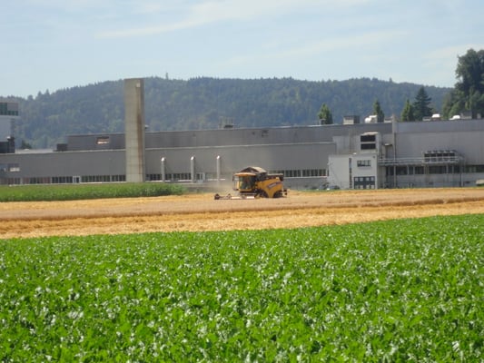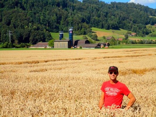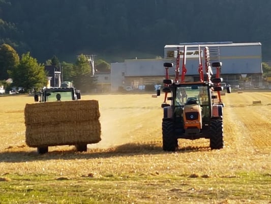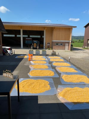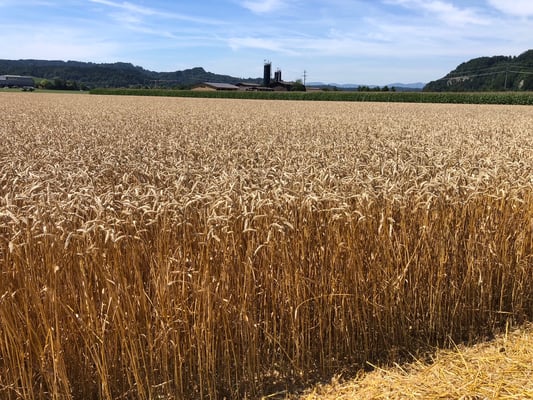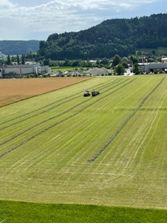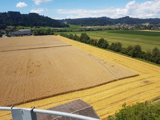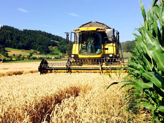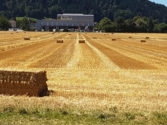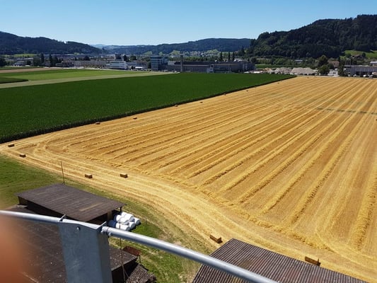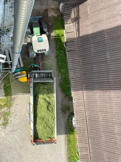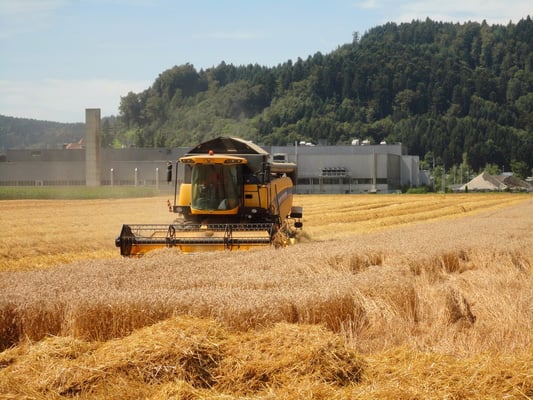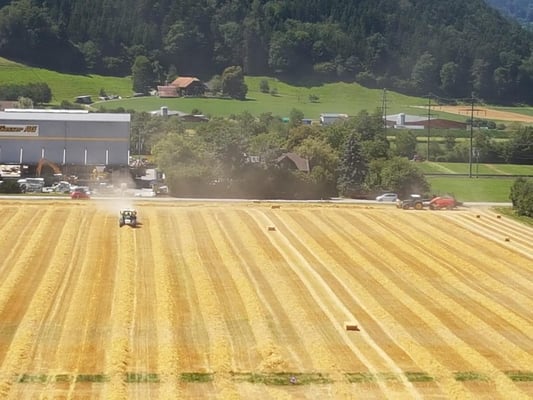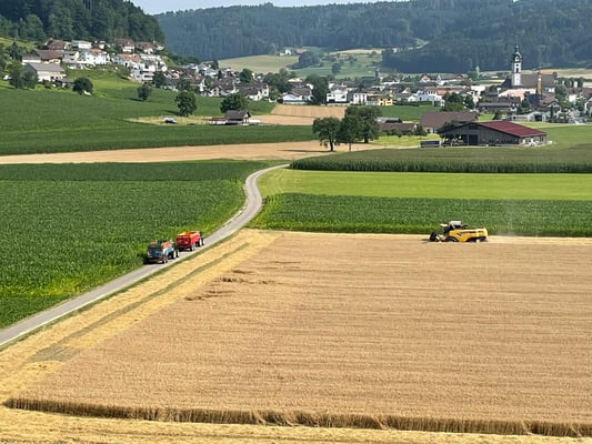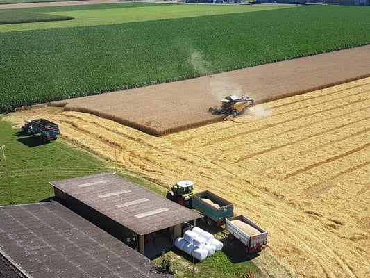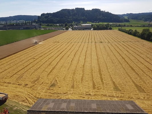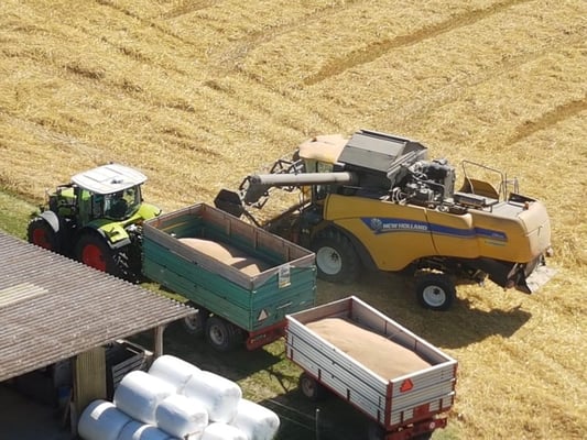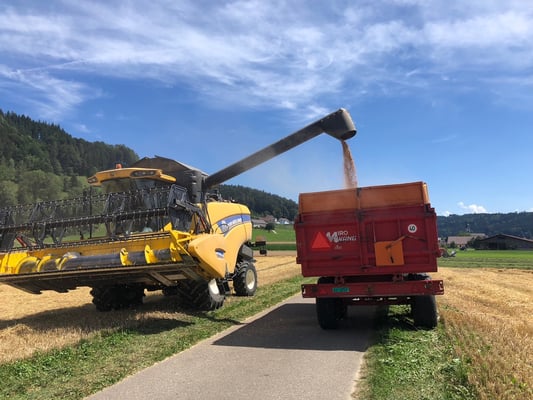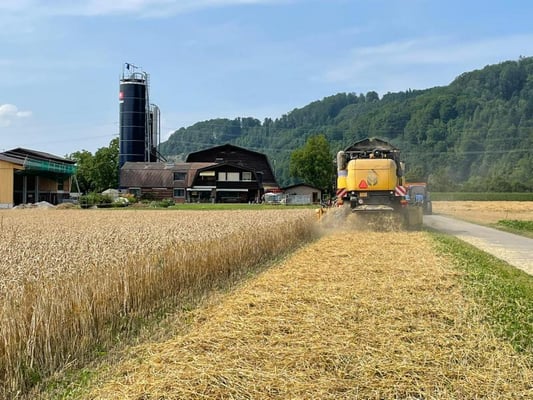Wir ernten 7 ha Bio Futterweizen bei schönstem Wetter.