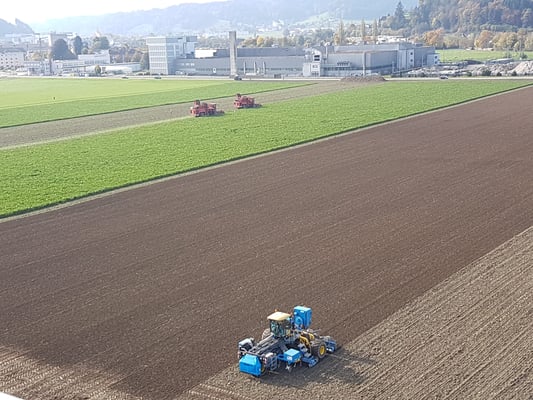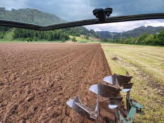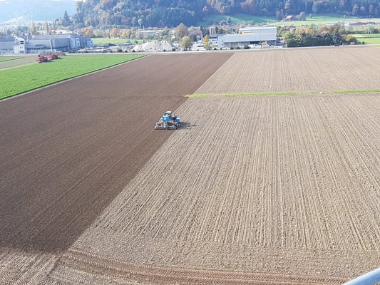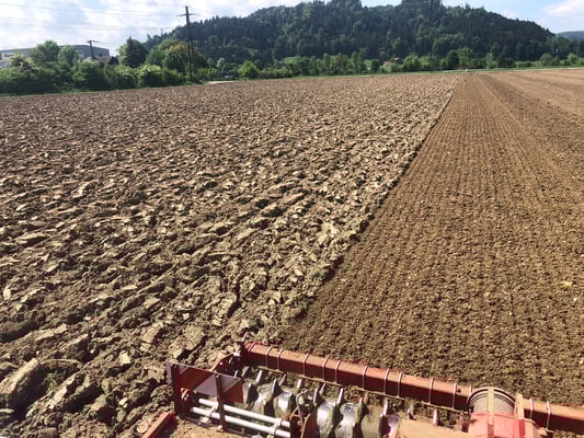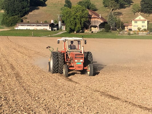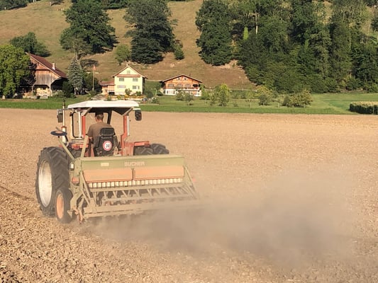 Das Lohnunternehmer Ryser von Richenthal kommt die 7 ha ansähen.
