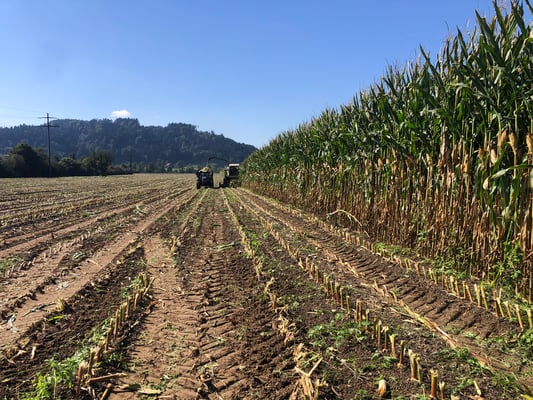 Direkt nach der Ernte vom Silomais wird der erste Bio Futterweizen angesäht.