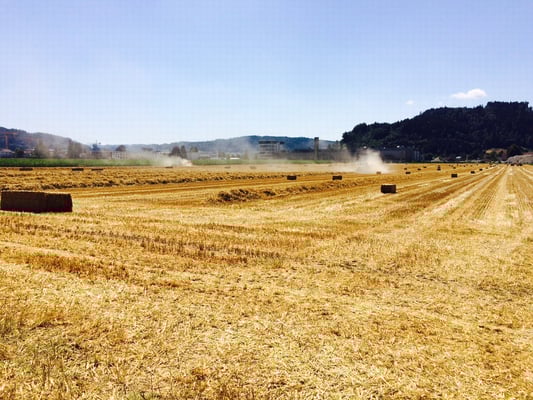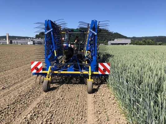 Nach dem Weizen ernten 2022 wird Gras angesät und gewalzt.